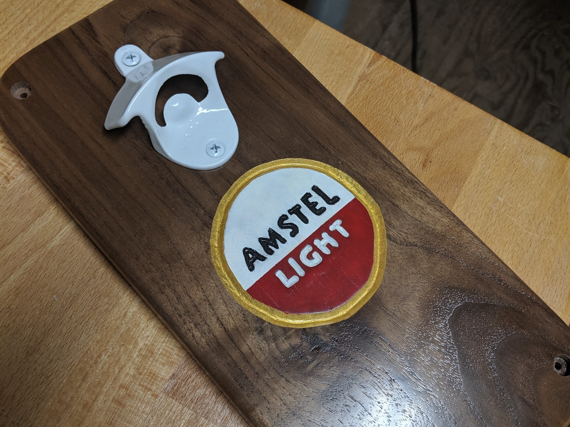 Amstel Light Bottle Opener made from Walnut, magnetic and wall-mounted 🌳🍻🧲⚡